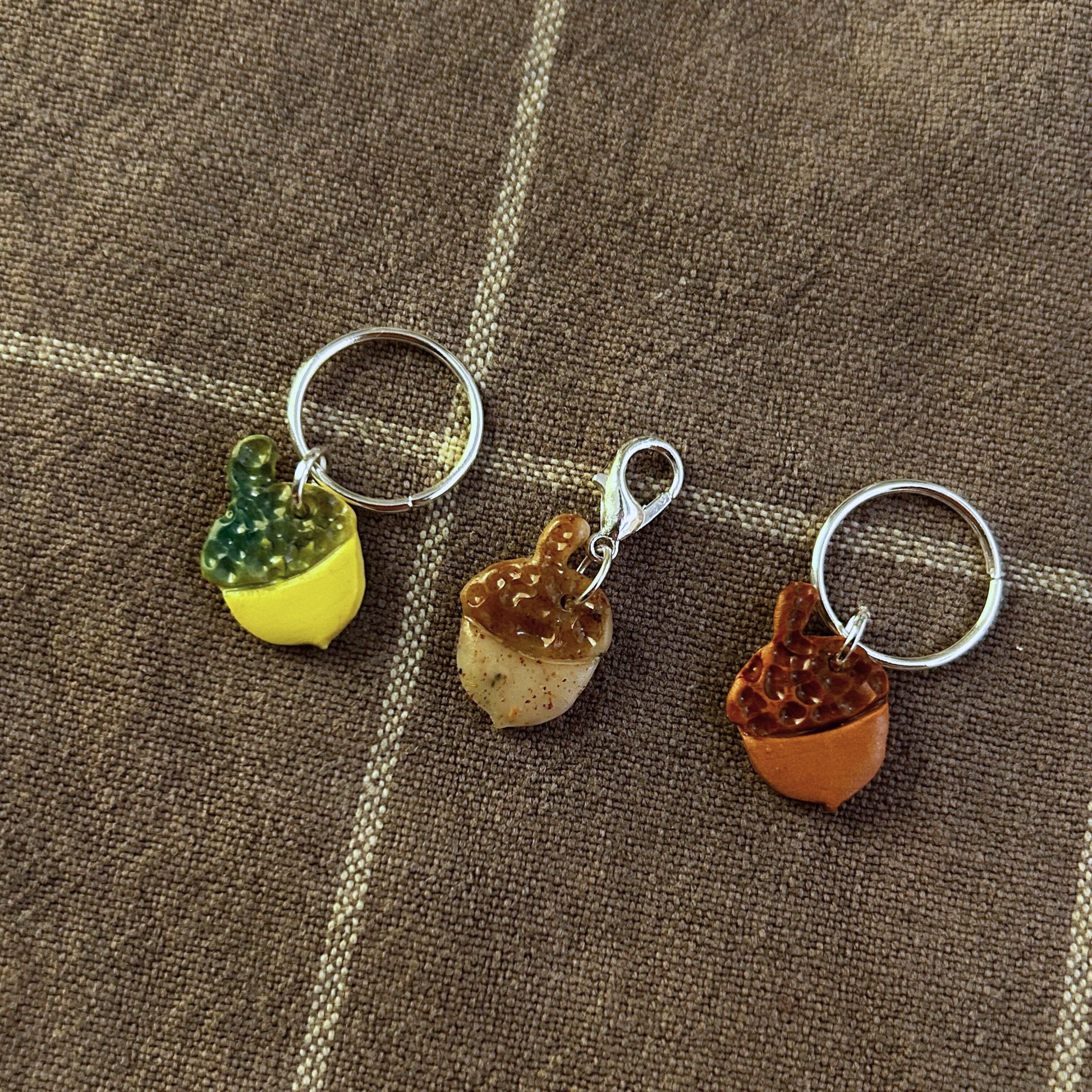 Ein Set handgemachter Maschenmarkierer aus Modelliermasse passend zum Thema Herbst und Natur. Kombiniere 3 Maschenmarkierer und spare dabei!