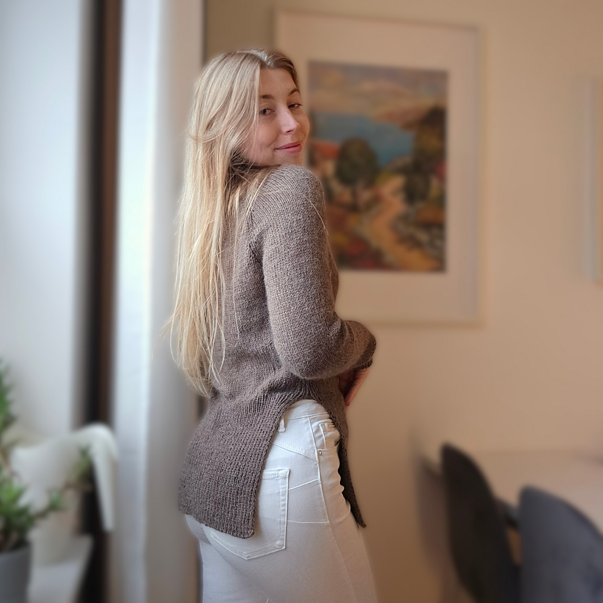 Das überlange Bündchen wird beim Waschen und Spannen in die finale Form gebracht. Solltest du dein Bündchen kürzer bevorzugen, so kannst du dieses selbstverständlich bei deinem Pullover anpassen.