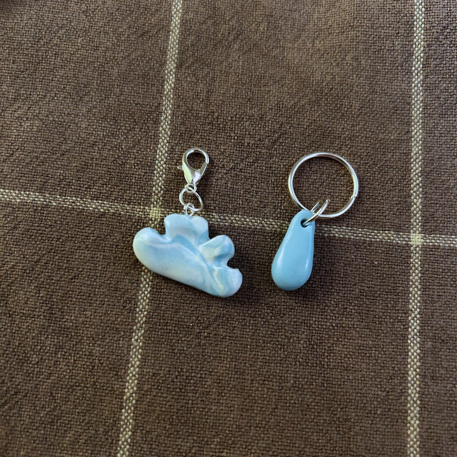 Ein Set handgemachter Maschenmarkierer aus Modelliermasse passend zum Thema Schietwetter. Kombiniere 2 Maschenmarkierer und spare dabei!