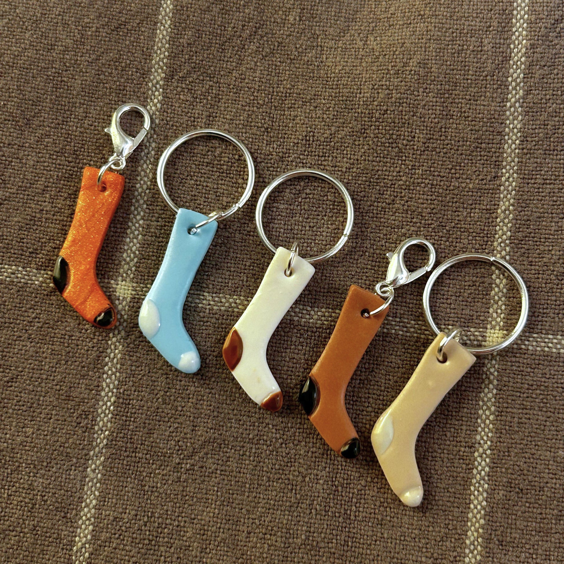 Ein Set handgemachter Maschenmarkierer aus Modelliermasse passend zum Thema Socktober. Kombiniere 5 Maschenmarkierer und spare dabei! Psst. einer dieser Markierer ist nur exklusiv im Set erhältlich!