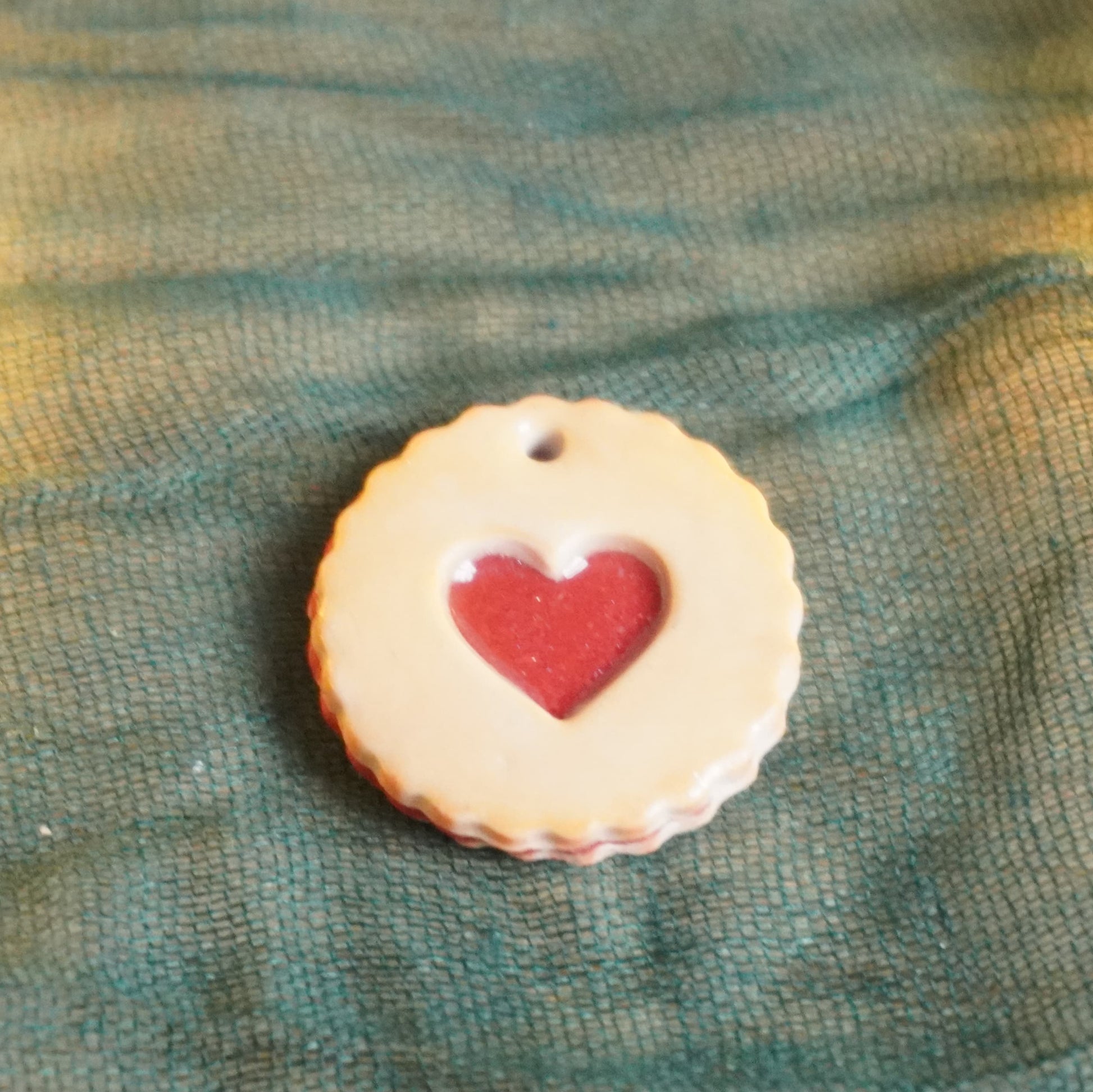 Ein handgemachter Maschenmarkierer aus Modelliermasse in Form des klassichen Weihnachtskeks dem Spitzbuben.
