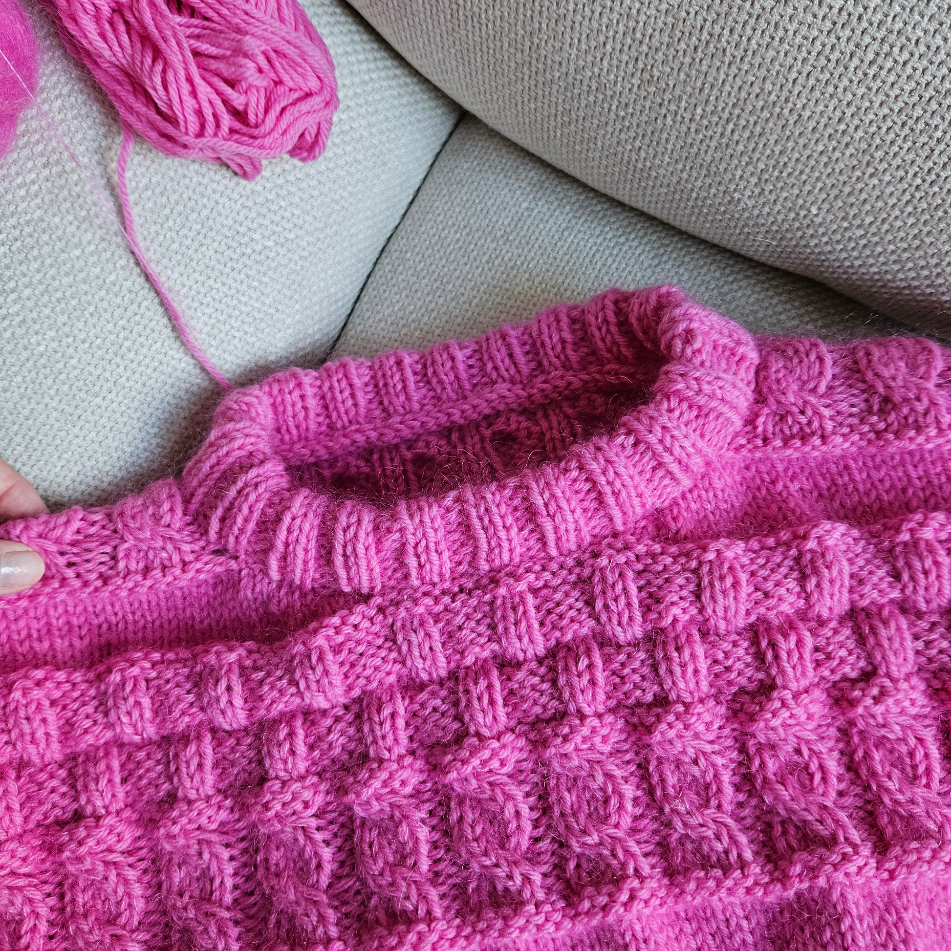Die Ärmel werden aufgenommen, in gleichmäßigen Abnahmerunden gearbeitet und später mit einer leichten Ballonform sowie einem 2x2-Rippenbündchen abgeschlossen.